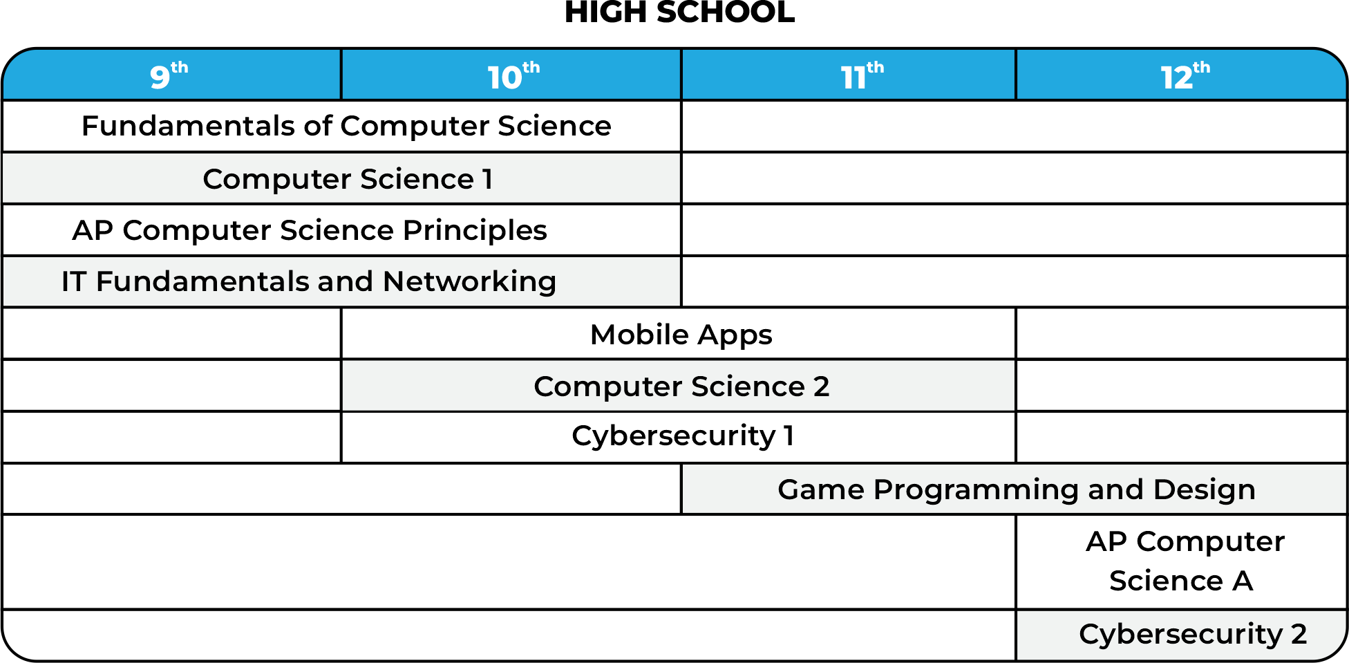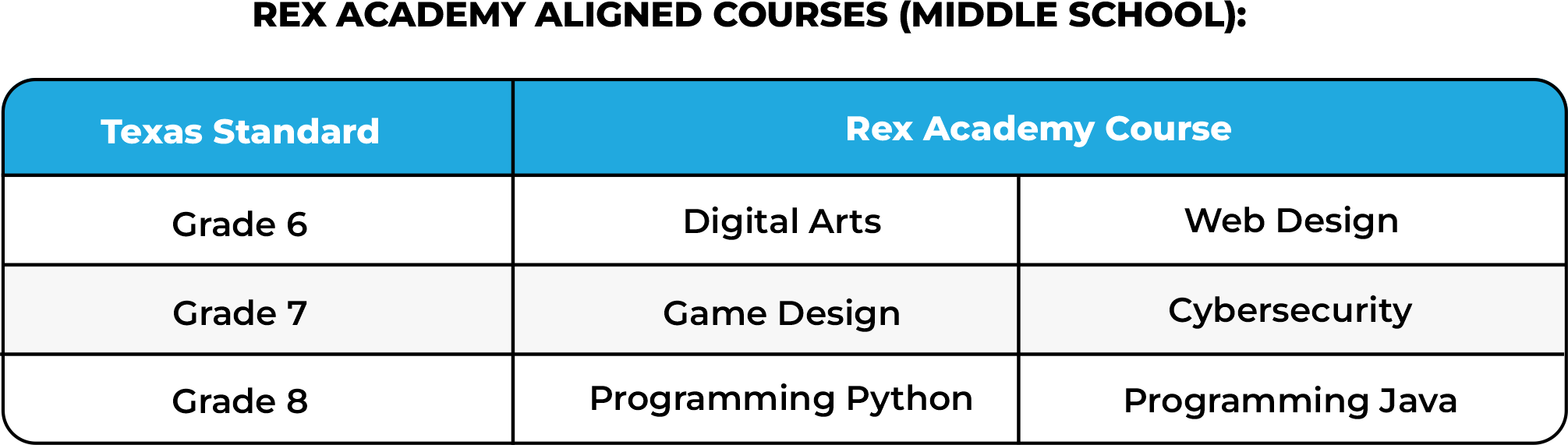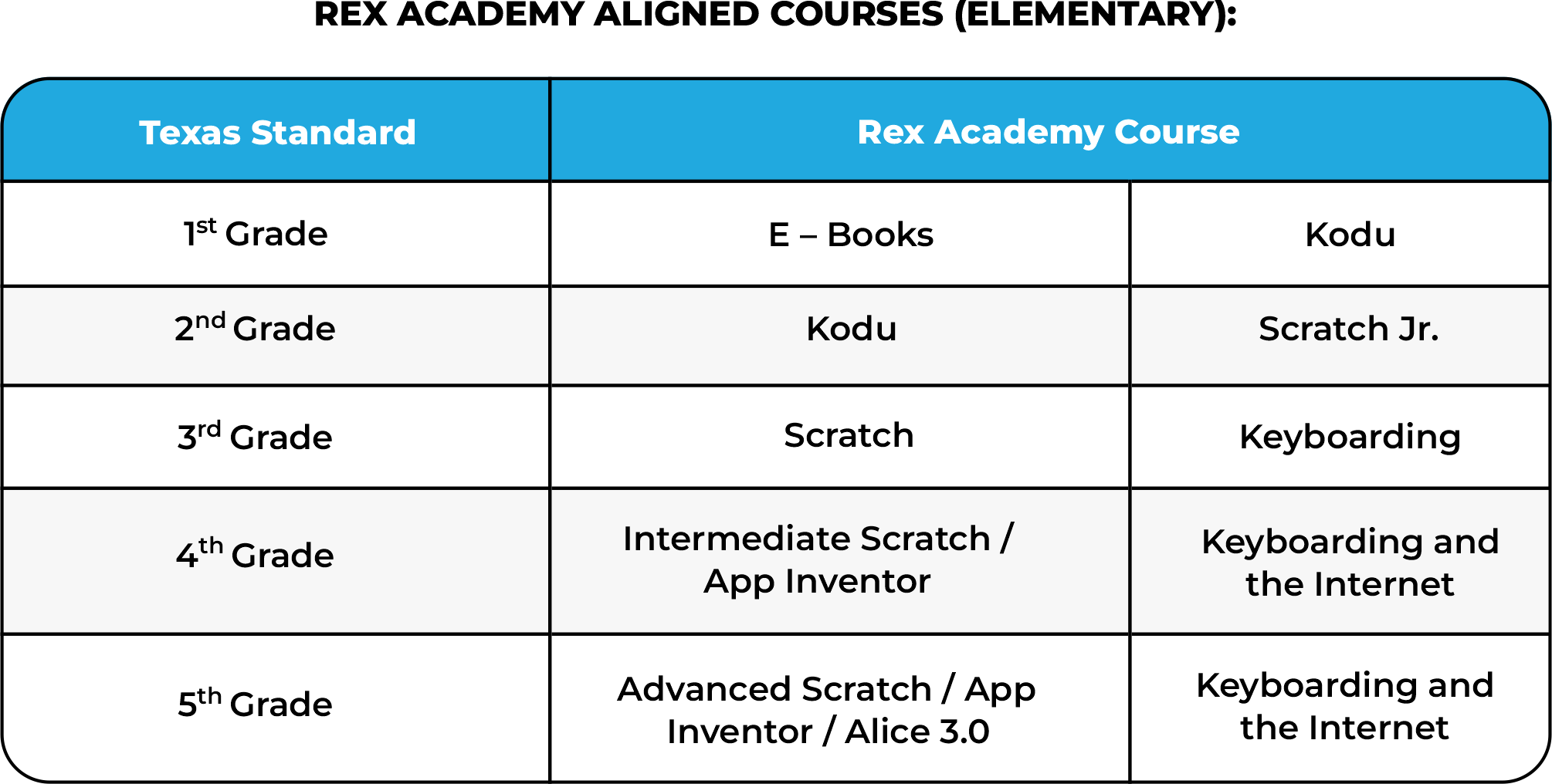 Per State of Texas Tech App Curriculum requirement (74.3(b)(2)(I)), all public high schools must offer, and 74.3(b)(4) each student must have the opportunity to participate in the following: